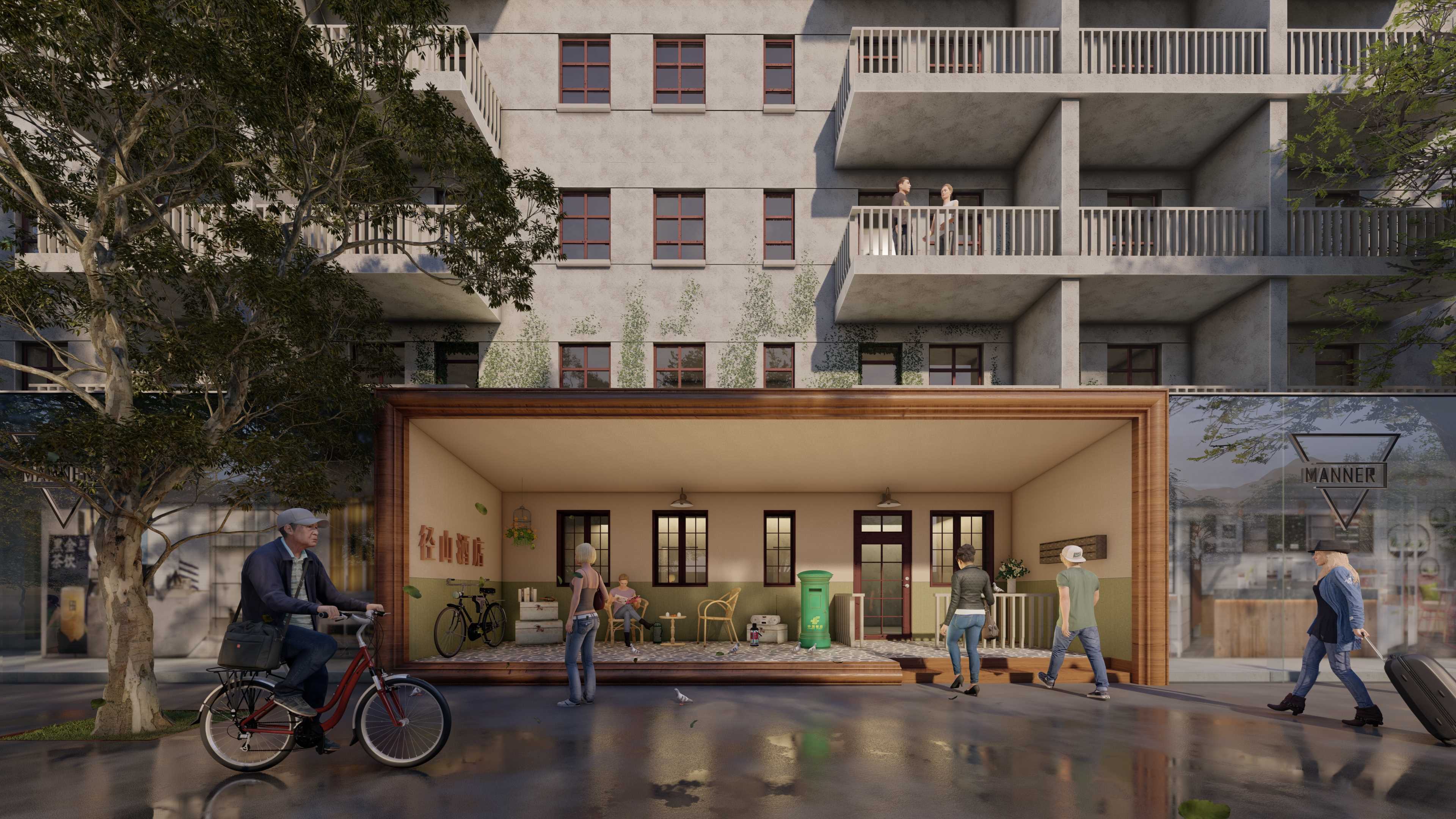 项目原先为茶厂配套建筑,我们的设计一定程度上保留了上世纪七八十年代的建筑风貌,提取时代元素,并融入地域文化与现代材料,打造舒适宜居且具有年代印记的新时代建筑。我们将原茶厂宿舍楼营造成极具年代氛围的轻复古主题酒店,同时结合周边的茶田风光,将顶层改造为全景餐厅。原卫生站改造作为配套活动中心、社区食堂、便利店、图书室等生活配套,在建筑风貌上尽可能保留原有红砖、花砖等标志性元素。新建人才公寓结合大径山元素,彰显宋韵美学的文化感和精致感。